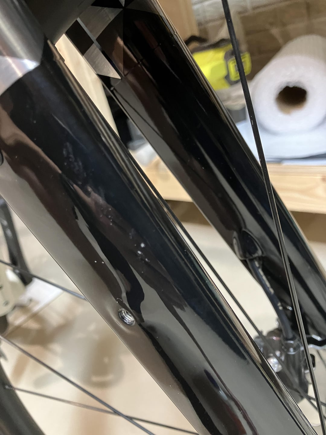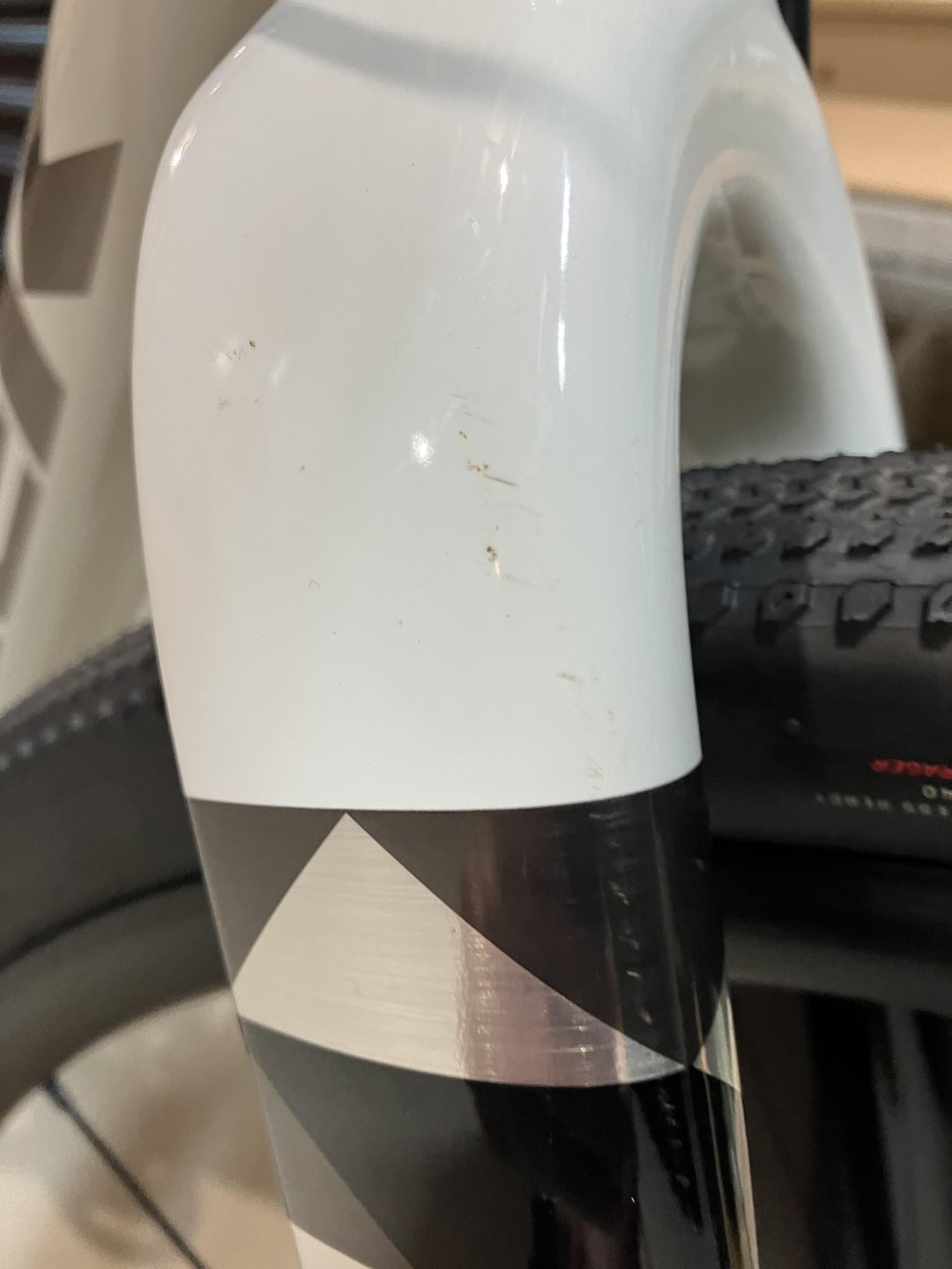 フォークの片側に数か所傷がついていました。しばらく新品の自転車を購入していないのですが、店頭で試乗などされた自転車を購入すると新品でもこのような傷はつきものなのでしょうか?