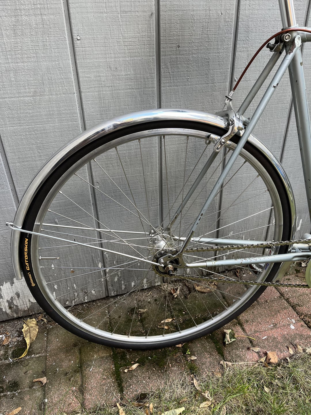 ほとんどの部品は Schwinn から流用しましたが、新しいものを入手しました。 – 古いセンター プルを交換するための Tektro R559 ブレーキ – フレームに対してわずかに幅が広すぎた SKS Longoard を交換するための VO フェンダー – Oury グリップ – ケーブルとハウジング – チェーン – Conti Gatorskins – Yellowbird バーエンド (まあ、これはちょっと馬鹿げた/高価なものですが、VO を注文したときに目に留まりました)