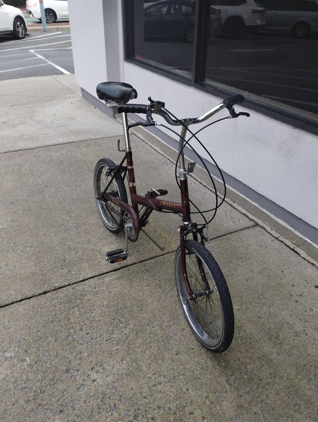 私がボランティアをしている自転車協同組合の寄付の山でこれを見つけて、すぐに衝撃を受けました。シンプルなグリーンで拭き、スターミー・アーチャーのハブに新しいオイルを注ぎ、3 つのギアすべてにシフトできるまでシフター ケーブルを調整しました。タイヤにはまだ空気が残っています!最大 80 psi まで。 3から2へのシフトダウンにはまだデッドゾーンがあったので、さらに調整する必要があるかもしれません。まずシートポストを450mmの長い合金のものに交換し、ボールジョイントセパレーターをコッタープレスとして使用してボトムブラケットを再梱包する予定です。遠い将来には、現在と同様にリアが AW ハブを中心に構築されたアロイ 406 ホイールセットを取り付けたいと考えています。ラックやフェンダーも取り付ける予定です。とにかく、簡単な試乗でこれがどれほど速かったかはかなり印象的でした。ずっと欲しかったのですが、これをプロジェクトにできそうです。