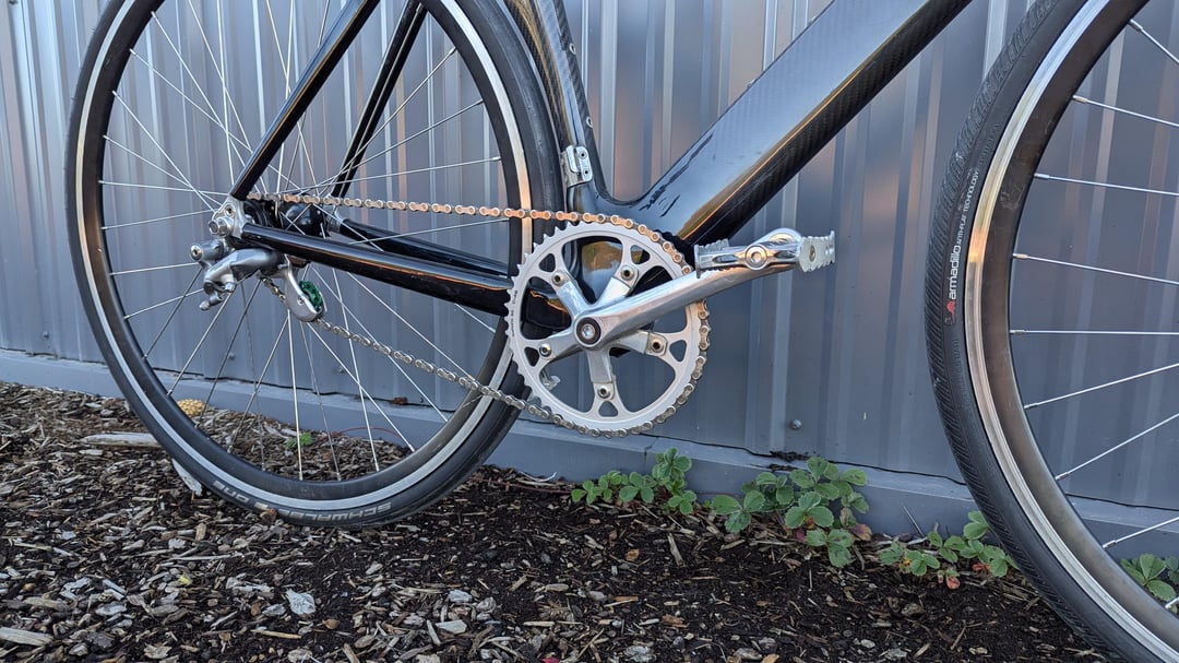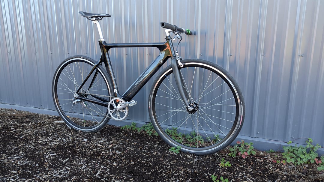 誰かがそのフレームについて何かアイデアを持っているなら、私は何でも聞きます。垂直ドロップアウトとダウンチューブシフターを備えているため、トラックバイクではなさそうですが、現代のシフターが登場する以前の非常に初期のカーボンフレームに違いありません…🤷🏼