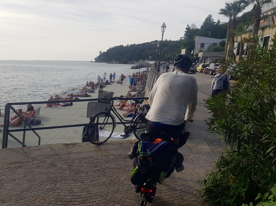 最後に、問題が 1 つありました。自転車でトリエステに向かう途中、インナーチューブが爆発しました。ブレーキ時の熱でタイヤがオーバーヒートしてしまいました。危険を承知で、頭を冷やすために一度立ち止まったのですが、おいしい食事が待ちきれなくて、残り数メートルでパンクしてしまいました。