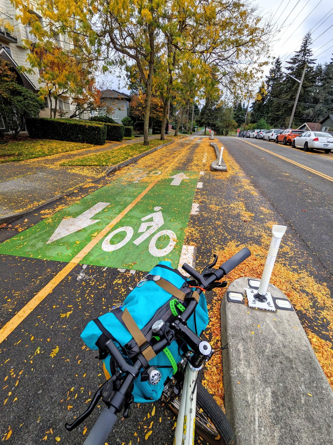 このバイクが大好きです。秋の森のドライブにぴったりです。低光量、グリーン、グレー、ゴールドカラー。