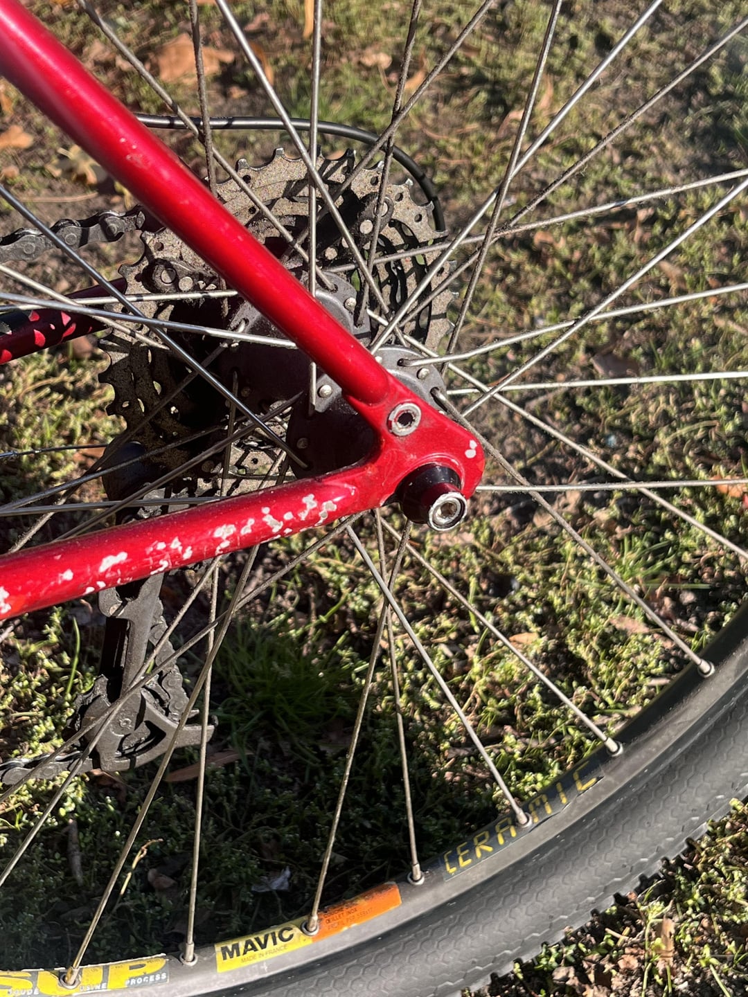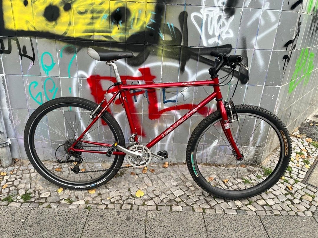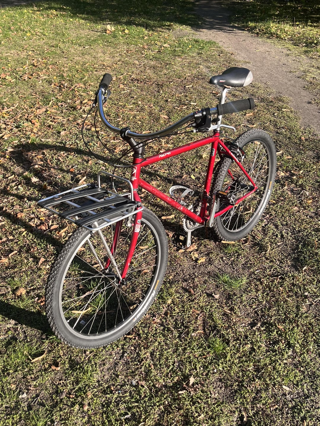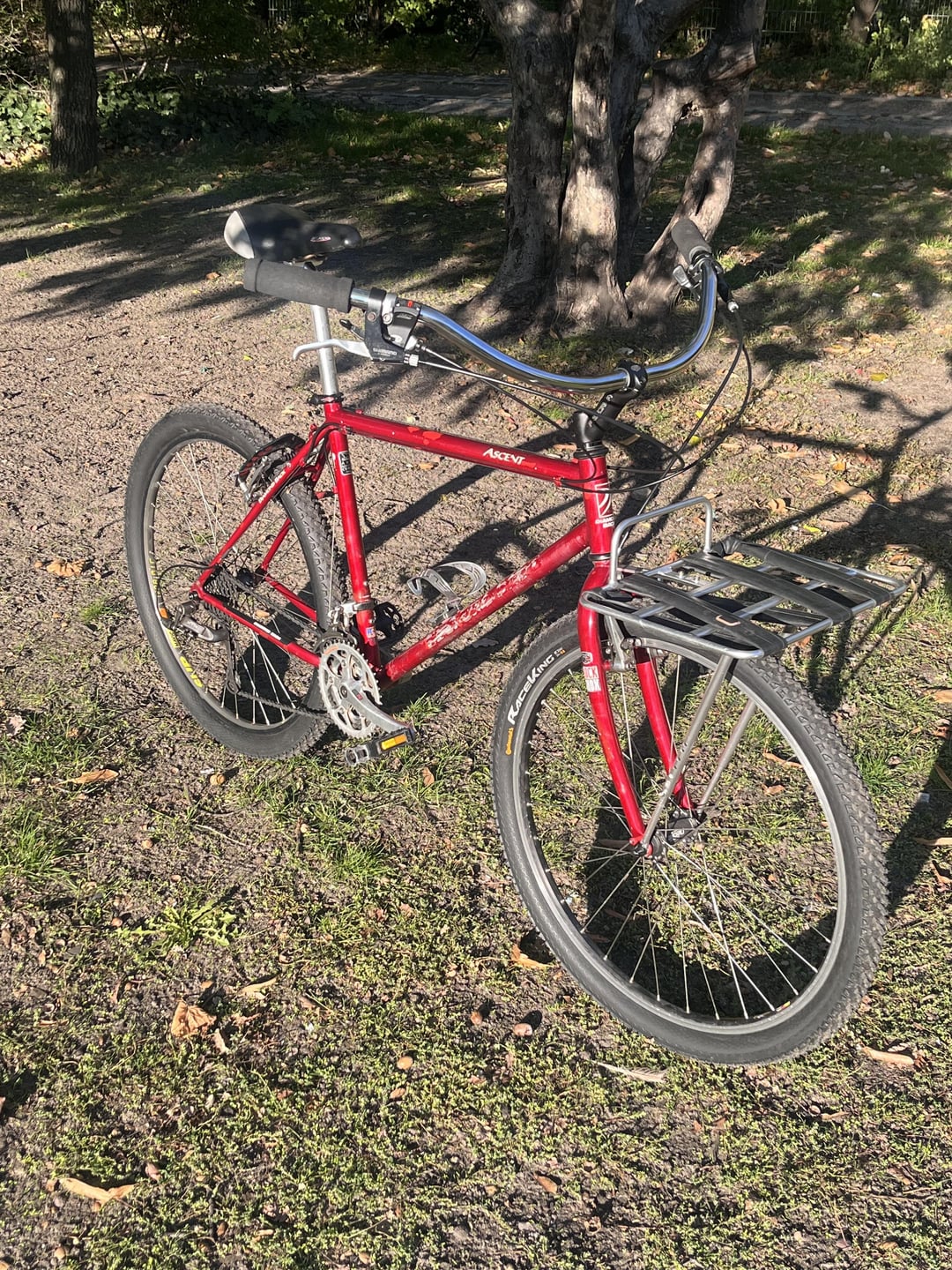 私の最新のバイクを皆さんにシェアしたいと思います。街中をのんびり走ったり、食料品の買い出しをしたりするために、安くて快適な自転車が必要でした。基本的に、数時間屋外に閉じ込めても気にならない種類の自転車です。私の予算は100ユーロでした。残念ながら、XT ブレーキと XTR リアディレイラーを搭載したこの Diamond Back Ascent を購入してしまい、予算より少し安く持ち帰ってしまいました 🙂 フレームは私には少し小さすぎましたが、これらを見逃すわけにはいきませんでした。その価格でのコンポーネント。そこで私は、非常に高いハンドルバーを追加しようと考えました。タイヤもケーブルも新品だし、快適ですよ。私はフレームが大好きです。リアのドロップアウトはとても上品で、色も素敵なレッドです。残念ながら塗装があちこちに剥がれていますが、気にしません。誰かがかつて言ったように、ただ乗ってください!最後の写真は購入時の様子です。私に売ってくれた素晴らしい人に感謝します!