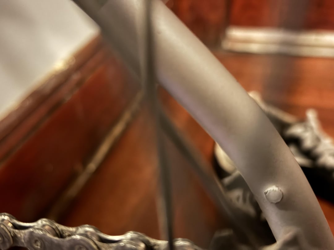Share Facebook Twitter LinkedIn Pinterest Bluesky Threads 彼女はボルトの長さが違うことに気づかず、シートステーにレンチで穴を開けてしまいました。これは修正可能ですか?溶接やその他の方法で固定することはできますか? by beetsmoothie Bicycling Bike Bike Repair Biking Cycling Repair サイクリング 自転車 自転車サイクリング 自転車に乗る 自転車の修理