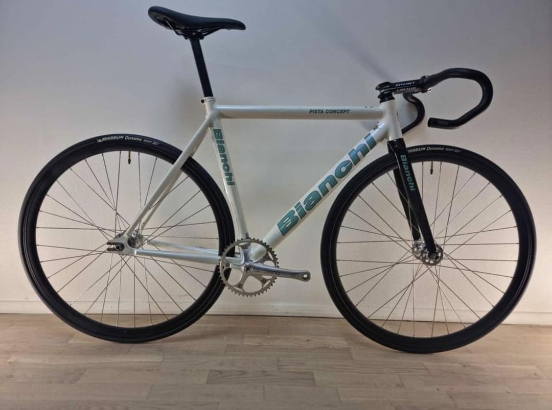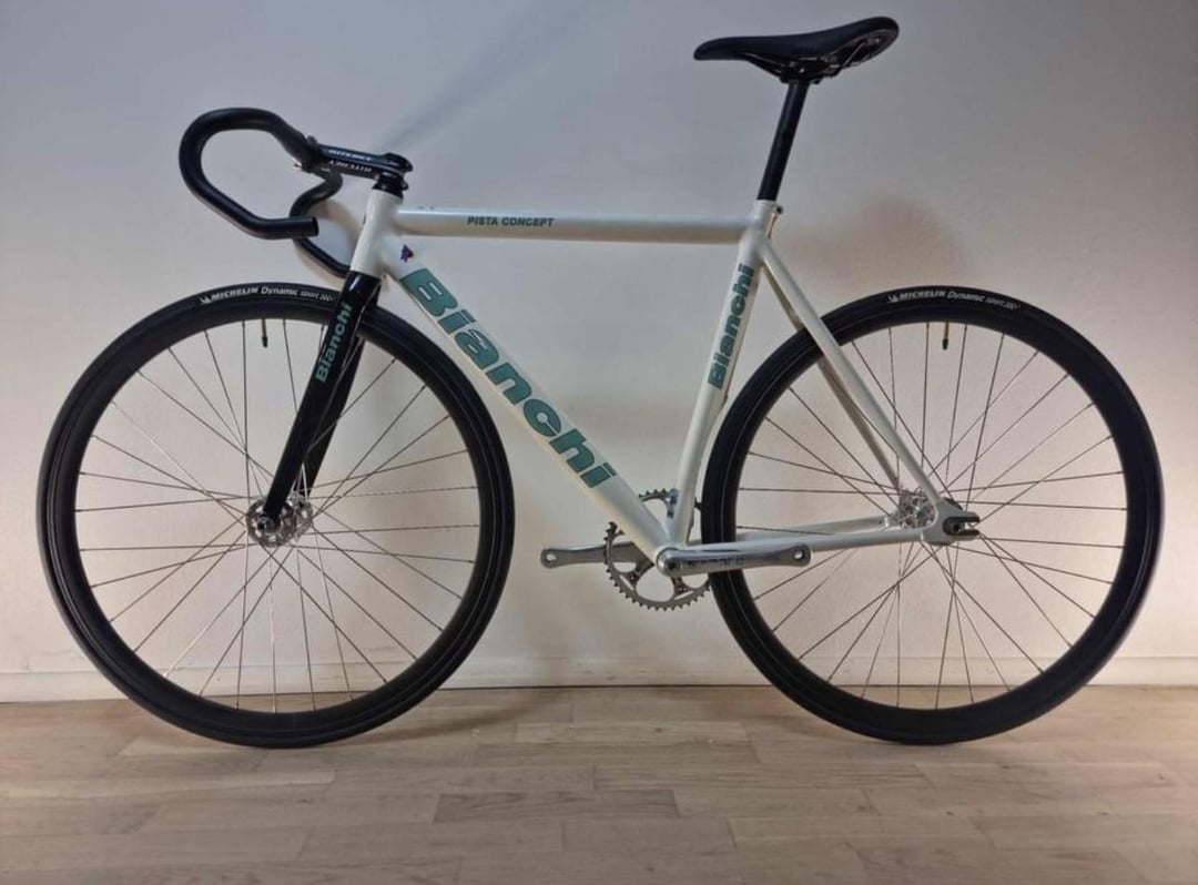 「2007 Bianchi Pista Concept サイズ 55 Dura-Ace 7710 クランクセット、オリジナル カーボン フォーク、WTB シルバラード サドル、リッチー ステム、特殊アルミニウム ハンドルバー、カーボン シートポスト、フリップフロップ ハブ付き Bike Attitude ホイール。」
