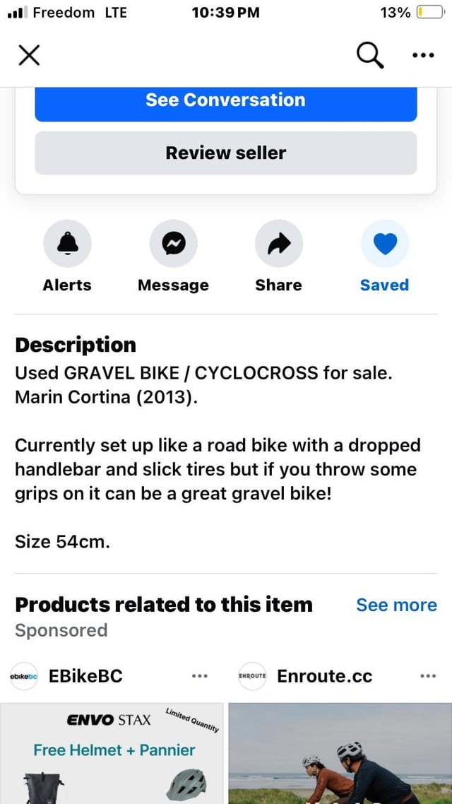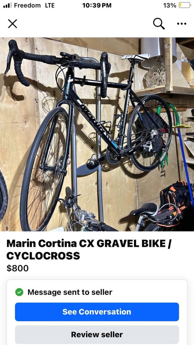 これについて何か意見がある人はいますか。彼は最低 $700CAD で喜んでやります。誰かアドバイスをお願いします。安くて軽くてアグレッシブなポジショニングのグラベルバイクを探しています。皆さんはどう思いますか?他の選択肢としては、$800CAD の Marin 4 Corners がありますが、それはよりツアーっぽいので、私が本当に求めているものではありません。