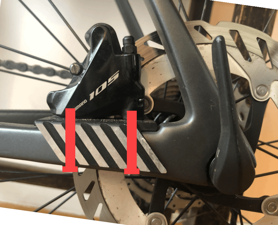 ロードバイクについているこの冷却フィンが左の靴のかかとをねじ込んでしまうので、取り除きたいと思っています。どのアダプターを交換する必要があるのか​​正確に教えていただけますか?キャリパーの下のフィンの材質の厚さは 4.1mm で、図に示すようにボルトが貫通します。ありがとう!